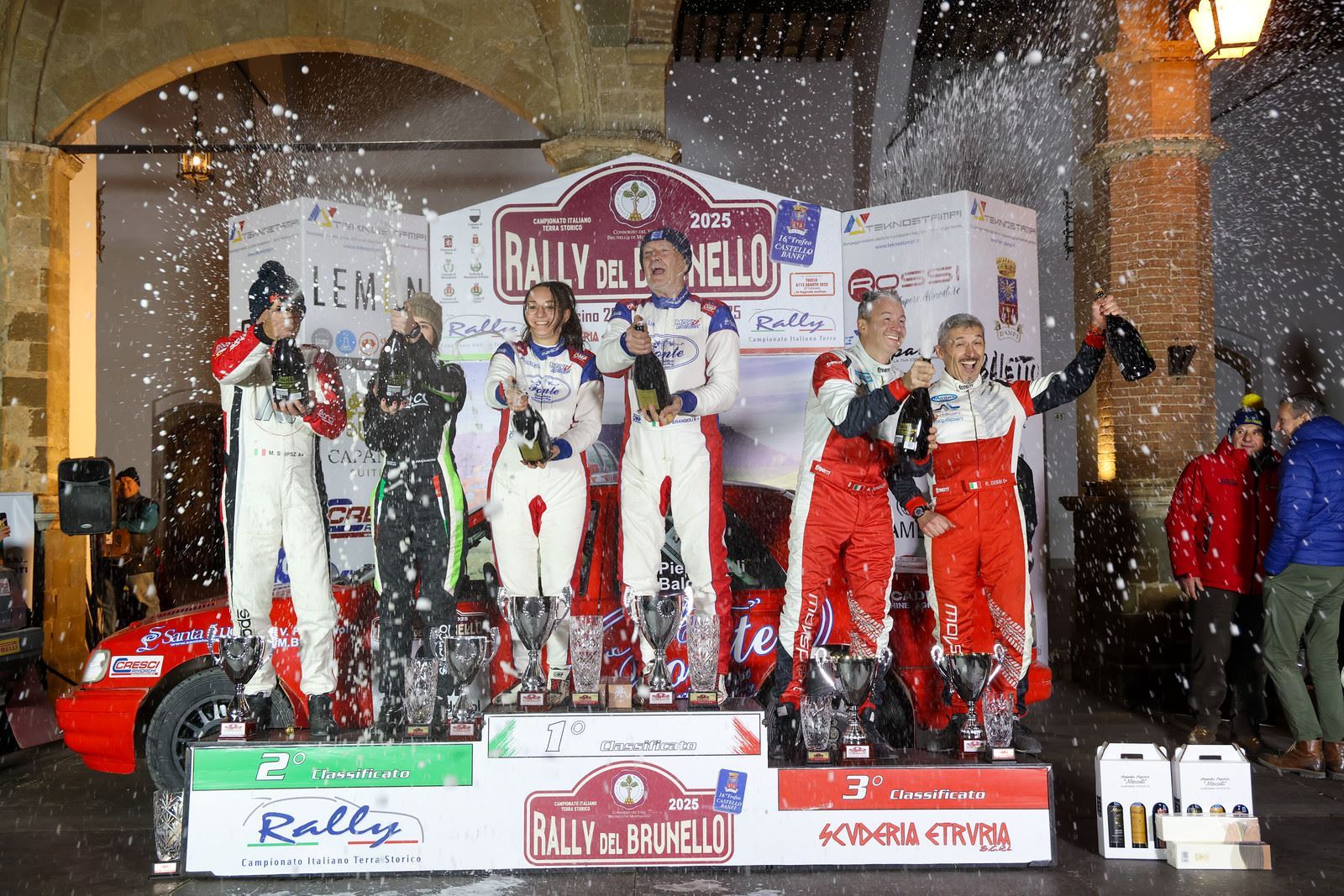 Il pilota di Montalcino firma per la seconda volta consecutiva l’albo d’oro nella gara di casa grazie a 8 prove speciali vinte su 10 affrontate. Secondi Sipsz-Paganoni su Lancia Delta, podio e vittoria tra le Due Ruote Motrici per Tonelli-Debbi su Ford Escort RS nell’atto conclusivo del Campionato Italiano Rally Terra Storico. Il Campionato Italiano